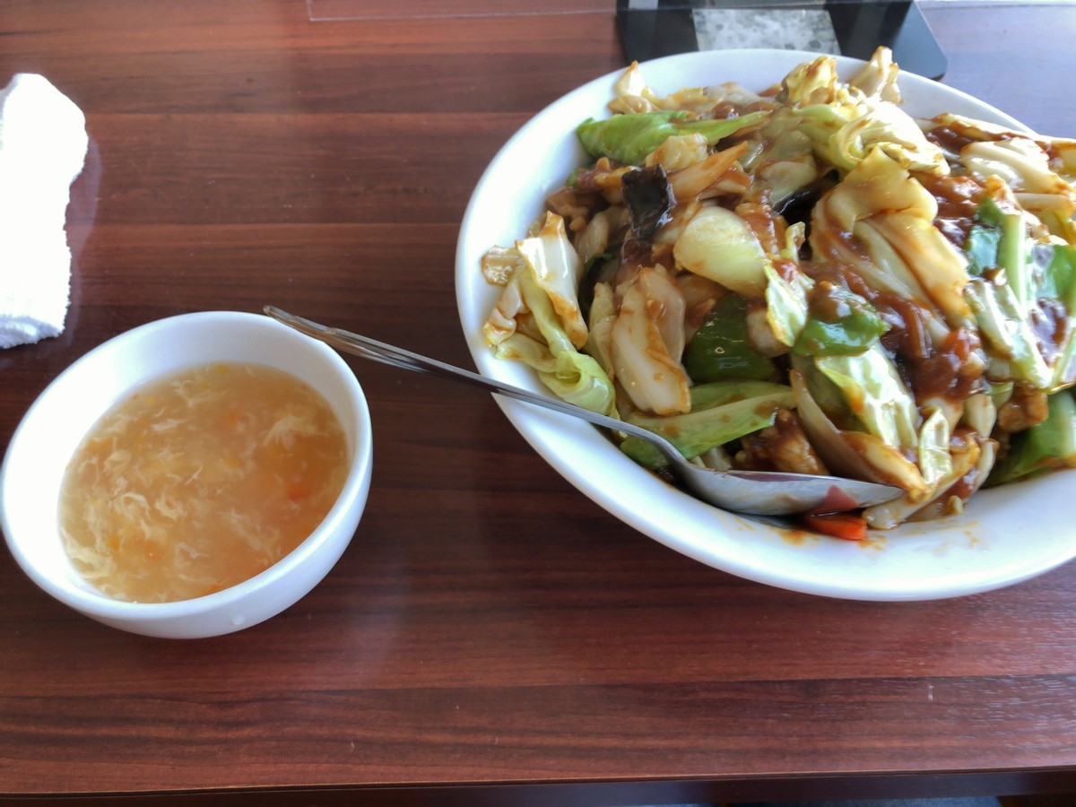 油でつやつやして、これは気をつけないとやけどしますね。はやる心を抑え、ふうふうしながら口に運ぶ。ああ!この濃い味。ごろごろと千切られたキャベツ。こういうのが食べたかったんだよ!そして味が染みたごはんがうまい。